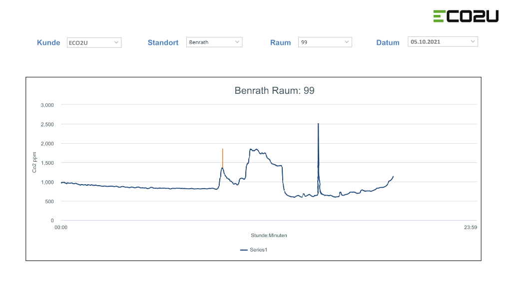Die digitale Aufzeichnung der Messwerte garantiert Ihnen als Verantwortlichem einen 24/7-Überblick ihrer Einrichtung. Sie können sich rechtlich absichern, da Sie eine lückenfreie Doku über mögliche Infektionsrisiken erhalten. ECO2U ermittelt für Sie, in welchen Räumen das Lüften nicht gut funktioniert und Sie können Handlungsempfehlungen für ein angemessenes Lüftungsverhalten aussprechen. Die gespeicherten Messwerte zeigen, ob Luftfiltergeräte einwandfrei arbeiten oder Stoßlüften ausreicht.